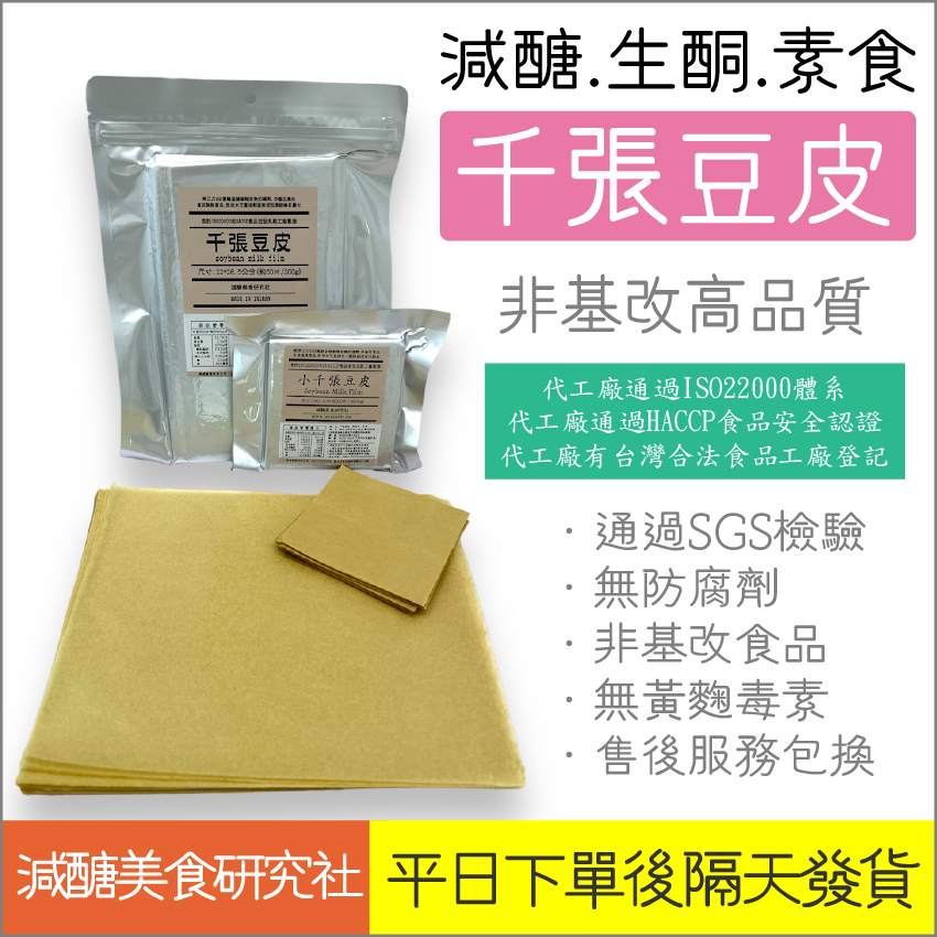 自創品牌的千張豆皮紙是公司對公司開發,在台灣食品法規的角色上我們叫做「委製商」,以公司名義委託ISO22000和HACCP優良食品工廠進行代工產品,生產須符合委製商下單需求,並且要求要進行SGS檢測合格: